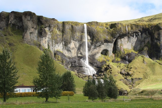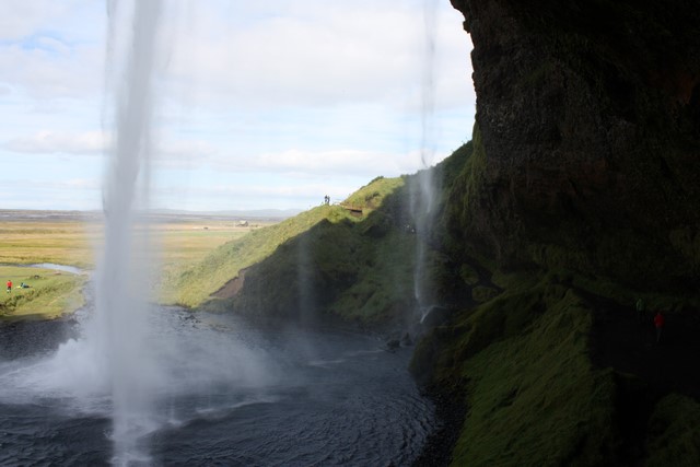 Derrière la chute de la Seljalandsfoss